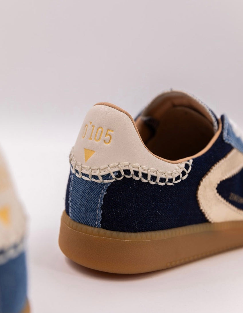 La Nova Jeans revisite le denim avec style en mixant deux nuances de jean pour un effet patchwork maîtrisé. Les surpiqûres contrastées soulignent la silhouette, tandis que le boomerang doré sur le côté apporte une touche lumineuse. Une sneaker originale et facile à porter, qui s’associera aussi bien à un total look denim qu’à une tenue plus habillée.